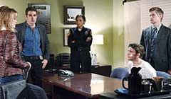 At the police station, Abe greeted Lani, who jumped and quickly closed her laptop. After a brief conversation, Lani excused herself, claiming that Abe had caught her on her way to the vending machine. His suspicions aroused, Abe waited until Lani was gone then opened her laptop. "Well, why are you trying to get information...about me?" Abe muttered as he stared at the computer screen. When Lani returned, Abe casually offered to answer any questions she might have -- about anything at all -- but she declined, grabbing her laptop as she explained that she had a bunch of reports that needed to be filed.