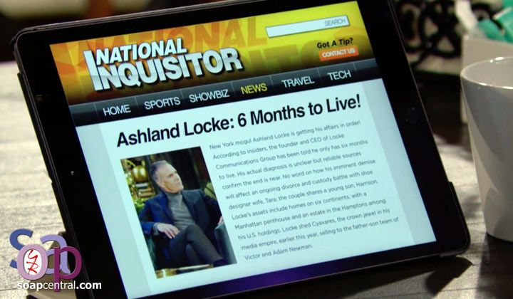 Kyle found Ashland at the door and assumed he was there to see Harrison. Ashland growled that he was there to see his soon-to-be-ex-wife. Tara returned to the room and told Kyle she'd handle it. After Kyle stepped out, Ashland accused her of leaking news of his illness to the media. Ashland surmised that Tara had latched onto her next set of millionaires, so she'd felt she could afford to be vindictive by going after him after he'd cut her out of his will. She claimed that she had no idea what he was talking about, and he barked that she was the only one with motive to destroy him.